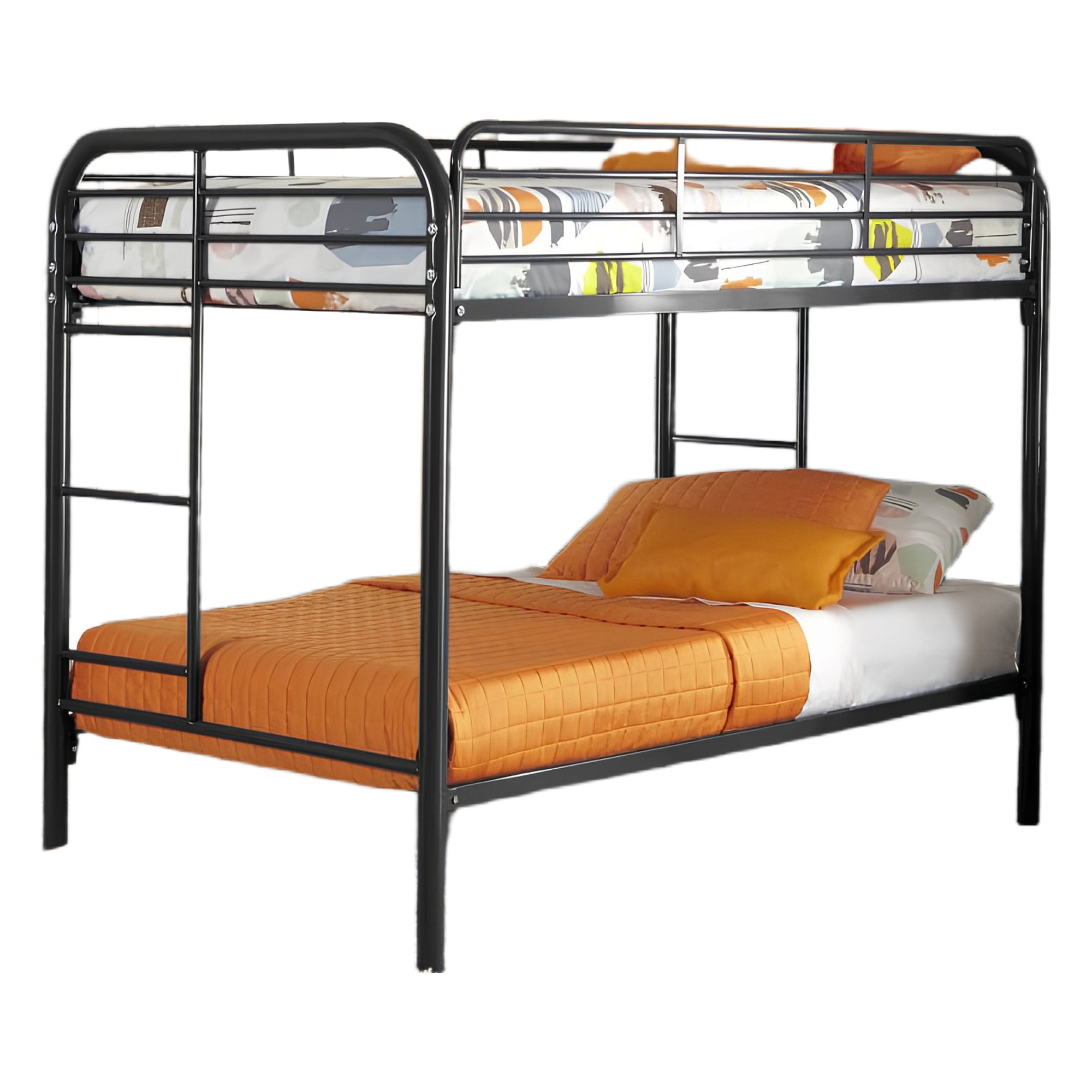 This Contemporary Steel Twin Bunk Bed offers a perfect balance of modern style, strength, and everyday functionality. Designed with clean lines and a sleek metal finish, it enhances any bedroom with a sophisticated look. The durable steel frame provides reliable support and long-lasting performance, while full-length guardrails ensure safety for top bunk sleepers. An integrated ladder allows easy and secure access to the upper bunk. Complete with included slats for proper mattress support, this bunk bed is an excellent space-saving solution for kids’ rooms, apartments, or shared bedrooms.